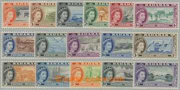 1954 SG.140-158, Alžběta II. - Motivy ½c - $2.40, základní série bez dodatečně vydaných zn. SG.144, 147, 150 a 155; svěží, kat. cca £58Vyvolávací cena: 600 Kč +16,7 %