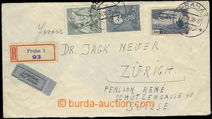 1937 issue III, air-mail letter to Palestiny(!), franked with. block of four airmail stmp 1CZK, Pof.L8, CDS Teplice - Šanov 22.XI.37, on reverse air-mail cancel. Prague 7/ 23.XI.37 and part arrival CDS Haderah 28.Nov.37. Only light folds in envelope Neobvyklá destination. 1937 issue III, comp. 3 pcs of air-mail entires, contains 1x postcard to Switzerland, 1x Us promotional Ppc of the first flight Brno - Zlín - Piešťany, 1x letter to Brit. India with Pof.L11, L8 with CDS Zlín 13.I.37 + on reverse air-mail cancel. Prague 7 and arrival postmark Batangar 20.Sep.37. good condition. 1938 issue III Reg, express and airmail. letter from Prague to Brno, with 3CZK, Pof.L10 3x, L7, 249. Posting CDS Prague 1/ 2.IX.38, on reverse air-mail Prague 7, air-mail Brno and arrival postmark Brno 2/ 8.IX.38. lightly faded. 1938 issue III, air-mail letter to London, with Pof.L7 + 10, CDS Liberec 4/ 28.III.38, on reverse transit. Prague 7 Airmail/ 29.III.38, good condition 1938 issue III, R + Air-mail letter to Switzerland, with Pof.L11, 341, 338, CDS Prague 1/ 14.IX.38, on reverse air-mail Prague 7/ 14.IX.38 and arrival postmark Zürich 15.IX.38. Light signs of usage 1938 issue III, Reg and airmail letter to Switzerland, with Pof.L7-10, thin/light CDS Kraslice 14.III.38, on reverse square CDS Prague 7, Airmail/ 14.III.38, 2x arrival postmark. Bern 1/ 15.III.38, good condition U:A5