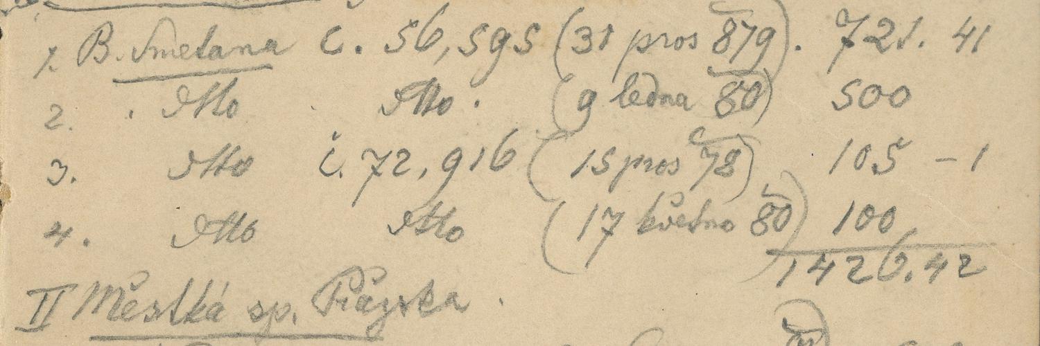 Rovněž nepotištěný rub zadní předsádky je hustě popsán. Je zde uveden soupis Smetanova jmění, vedený u tří ústavů (Česká spořitelna, Městská spořitelna pražská, Občanská záložna). Na tomto místě je rovněž přímo uvedeno jméno „B. Smetana“, na které byly vedeny účty u České spořitelny.