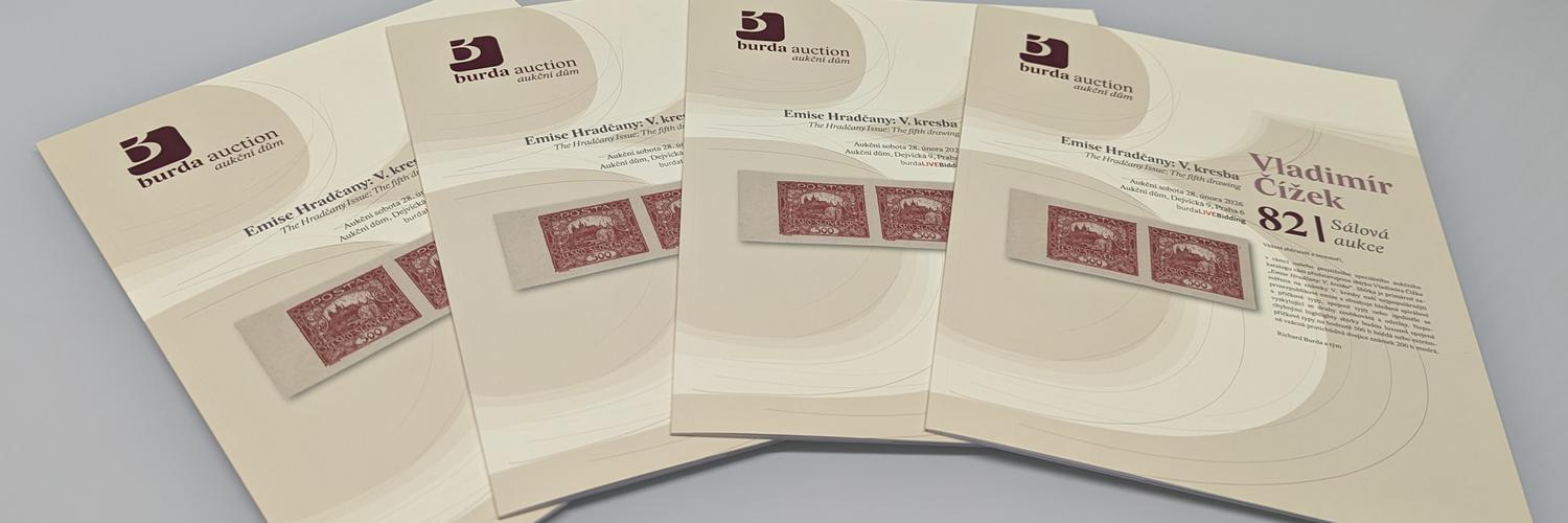 V naší nadcházející únorové Sálové aukci 82 se budou dražit v rámci speciálního aukčního katalogu vzácné a hledané položky emise Hradčany významného sběratele Vladimíra Čížka. Sbírka je primárně zaměřena na známky V. kresby - spirálové a příčkové typy, spojené typy nebo ojediněle se vyskytující se druhy zoubkování a odstíny. Highlighty sbírky budou nepochybně luxusní spojené příčkové typy na hodnotě 500 h hnědá nebo extrémně vzácná protichůdná dvojice známek 200 h modrá.
