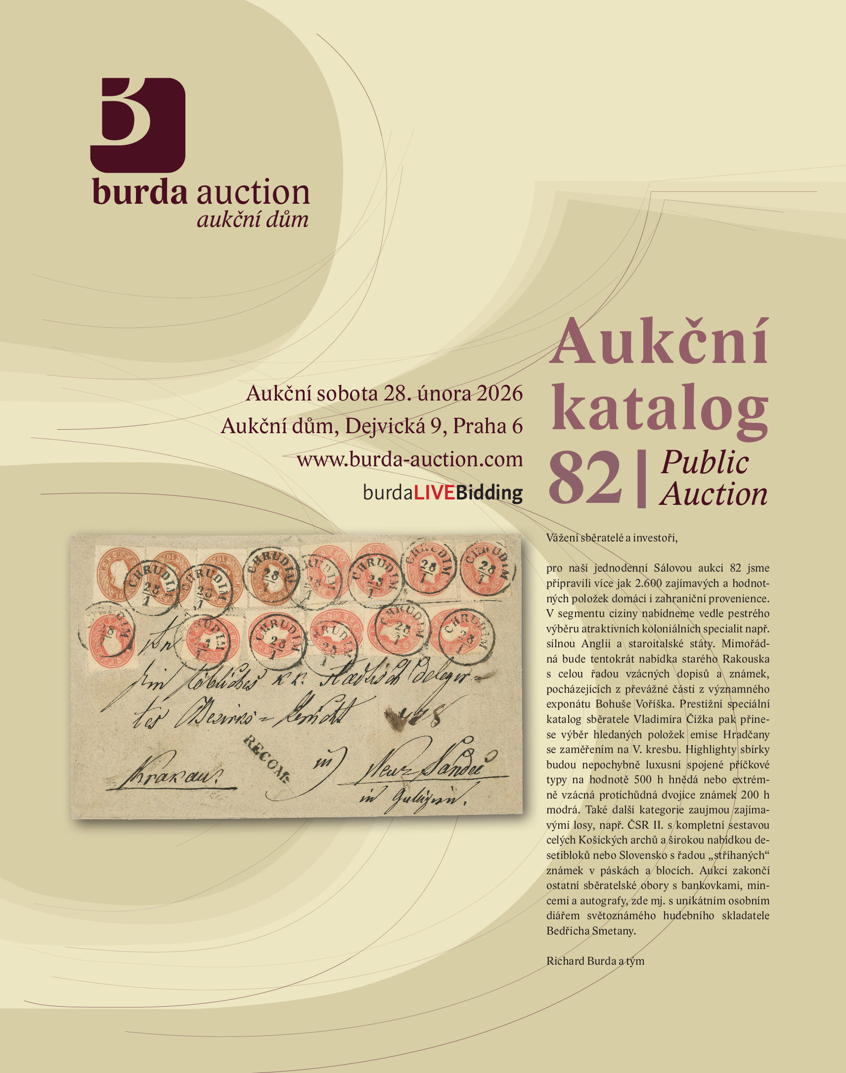 V letošním roce čtvrtá a v celkovém pořadí 81. aukce firmy Burda Auction s.r.o. proběhla přes internet v sobotu 22. listopadu 2025. Z nabídnutých více než 2.500 položek včetně sbírek a partií v celkové hodnotě 9,3 milionů korun se jich prodalo 75 %.