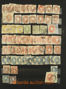 1867-1918 AUSTRIA větší sestava, obsahuje mnoho známek emise 1867, 1883 a 1890, varianty odstínů a zoubkování, nalepeno v účetní knize, lepší razítka uložena na kartičkách, nezpracováno, vhodné pro specialisty, k dalšímu zpracování, kat. jistě tisíce €