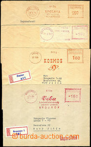 1945-49 comp. 8 pcs of letter franked by meter stmp. , Commercial and trade association Olomouc parcel dispatch card segment, Arnot Prague 1, Economic cooperative ...Kutná Hora, VDP Prague 21, 2x Cosmos Čáslav, Peněžní headquarters land. co-operations Prague 7, Selecta Prague 7; good condition 1947-50 comp. 4 pcs of commercial oblong envelopes franked by meter stmp., ČKD Prague 79, Benzinol Hradec Králové, Czechosl. colliery Prague 1; good condition 1951 air-mail letter to Hamburg with commercial meter stmp PRAGUE 1/ SKLOEXPORT/ 19.11.51, letter open and sticked up English censorship, postal imprint only partial (crown + number), envelope vertical folded, else preserved 1962-64 comp. 4 pcs of envelopes with meter stmp Veba Broumov, Cosmos Čáslav, Koh-i-Noor České Budějovice, Spolana Neratovice, good condition