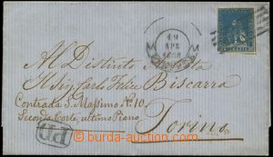 1860 letter to Naples (Napoli) with Mi.19 and 20, CDS LIVORNO, by ship post, with surtax 20Cmi, at top short tearing and light fold, rarer franking U:A5